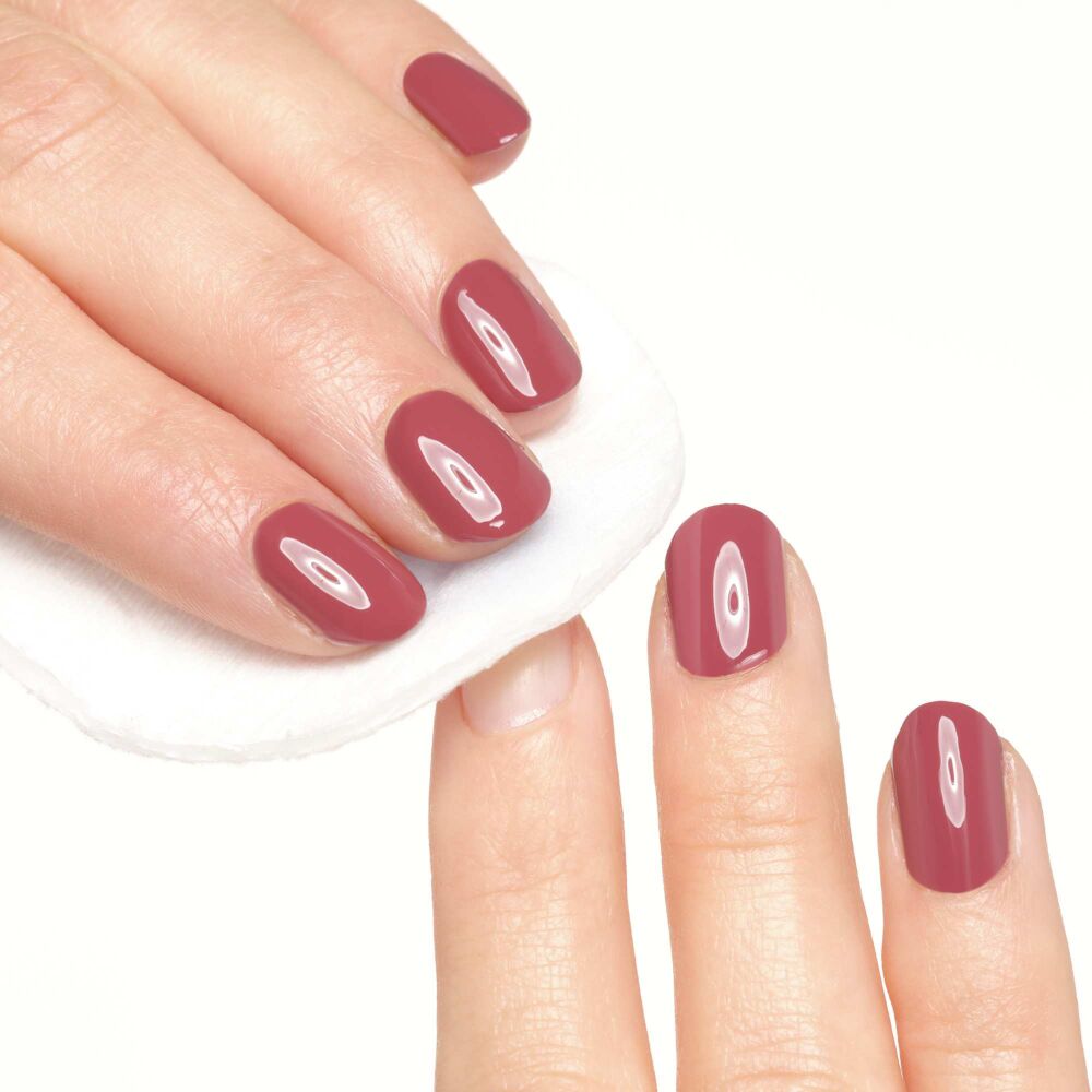 Na vatko nanesite odstranjevalec laka za nohte in jo pritisnite na nalakiran noht. Na kratko pustite, da se vpije, nato pa zdrgnite. Po potrebi postopek ponovite. Po uporabi si umijte roke.
